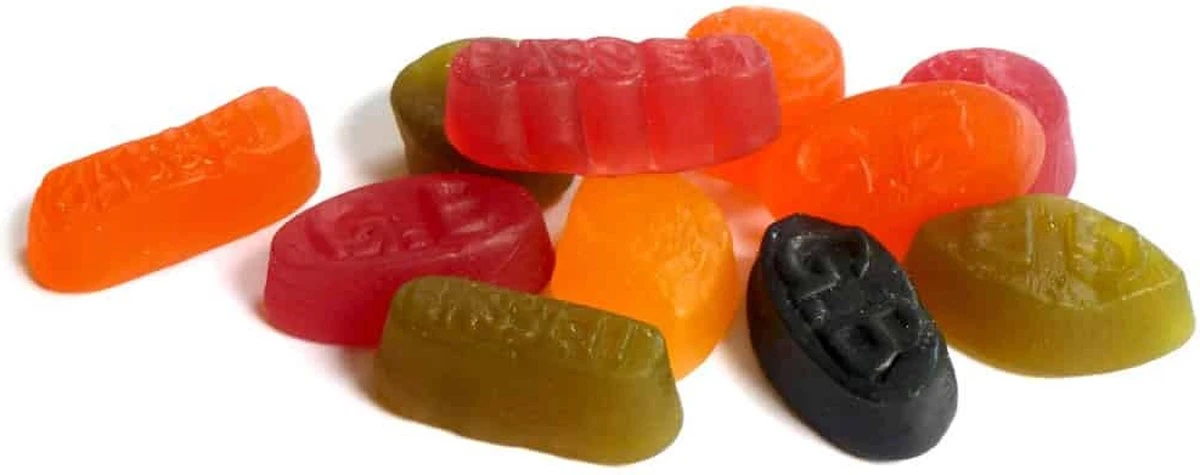 De originele zachte Winegums in diverse fruitige smaken. Productinformatie: plm 3 cm lang x 1 cm breed gewicht gemiddeld 5 gram per stuk