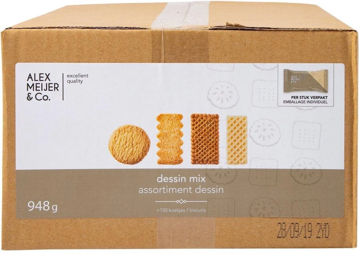 Koffiekoekjes Mix Dessin Grote XXL Doos 150 Apart Verpakte Koekjes Alex Meijer