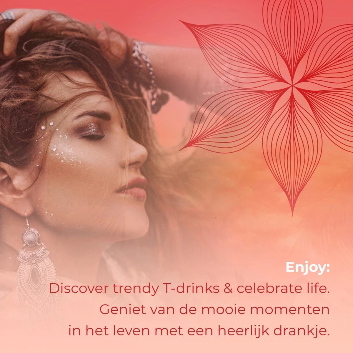 Sencha Groene Thee 50%, Appelstukjes, Citroengras, Lindeboombloesems, Lindeboombladeren, Zoete bramenbladeren, Goudsbloemblaadjes, Kruidenolie, Natuurlijk citrus aroma