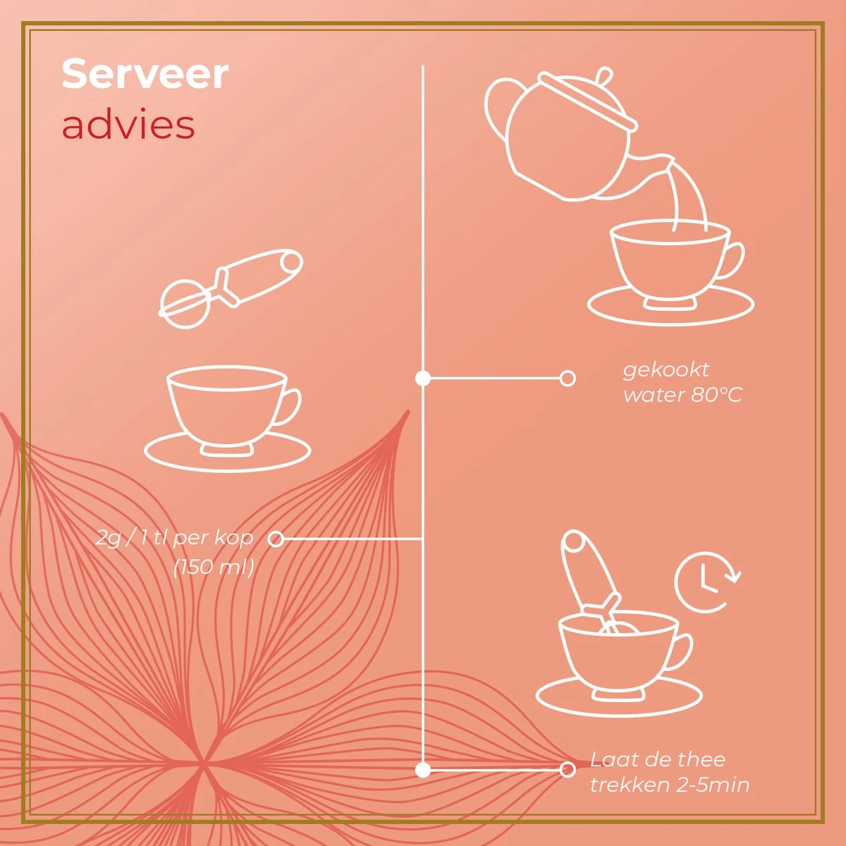 Japan staat bekend om de kwaliteit van haar pure groene theeën. Deze exclusieve groene Sencha blend uit Japan heeft dan ook een heerlijke vegetale smaak en is in perfecte harmonie met de andere ingrediënten in deze blend.