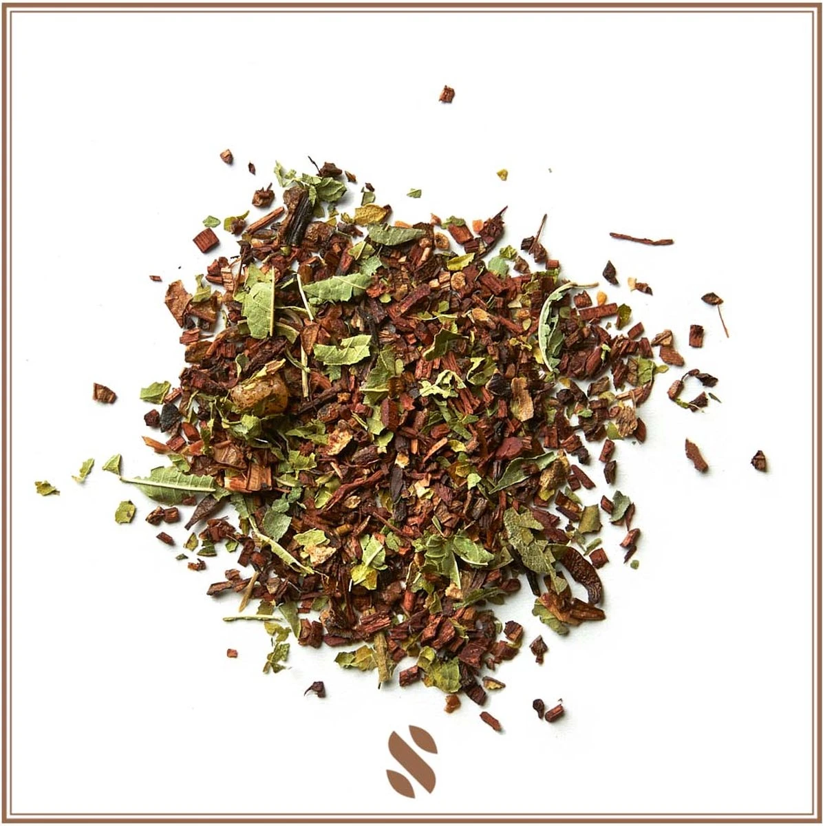 Look & feel: donker rode naaldjes honeybush en groene stukjes citroenverbena